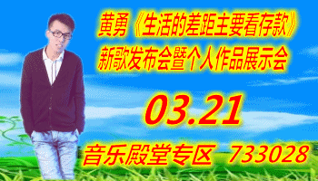 简介:VV娱乐社区音乐殿堂专区举办的是《黄勇《天天琢磨来钱道》新歌发布会暨个人作品展示会》为了弘扬VV娱乐社区,我们通过举办《黄勇《天天琢磨来钱道》新歌发布会暨个人作品展示会》给网络的朋友们应该展示自我的舞台,更好的丰富朋友们的业余文化生活;以扩大的音乐殿堂专区人气,在VV娱乐社区的影响力,使音乐殿堂专区越办越好。让我们共同走进音乐的殿堂,欣赏优美的音乐,让音符指引着我们,在旋律中相遇,在旋律中相识,在旋律中愉悦;在旋律中放飞心情;带给你不一的视听盛宴,期待您的光临指导。